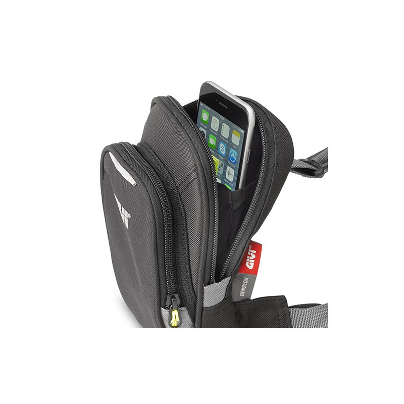 Borsello da gamba con tasca interna e anteriore. Può essere agganciato alla cintura o al passante del pantalone.